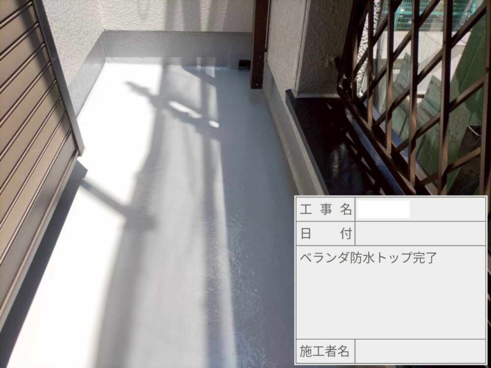 防水は、ベランダの防水施工とサッシ周りなどのコーキング工事を行いました。