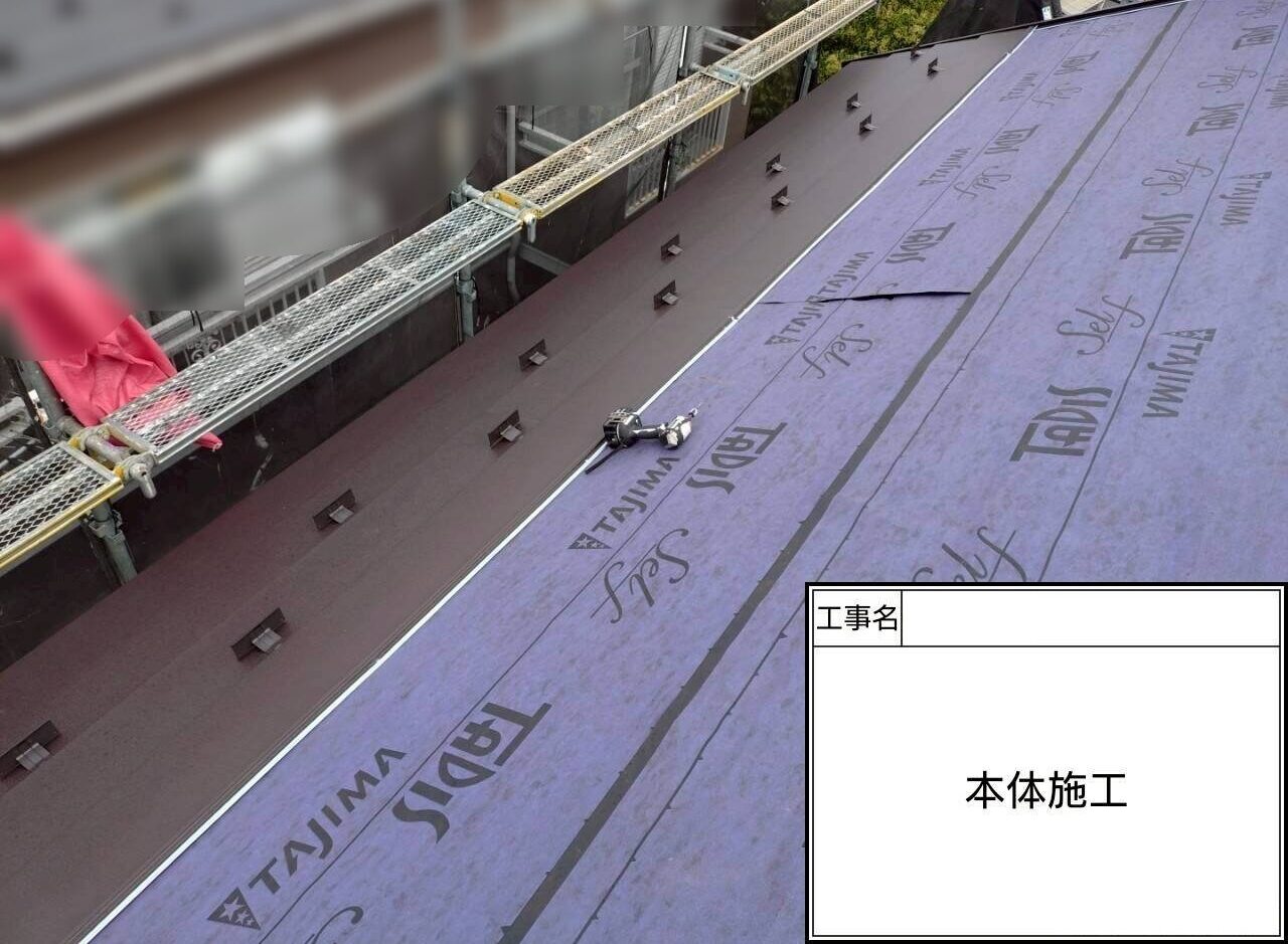 屋根は、ルーフィングシートを貼り、葺き替えました。