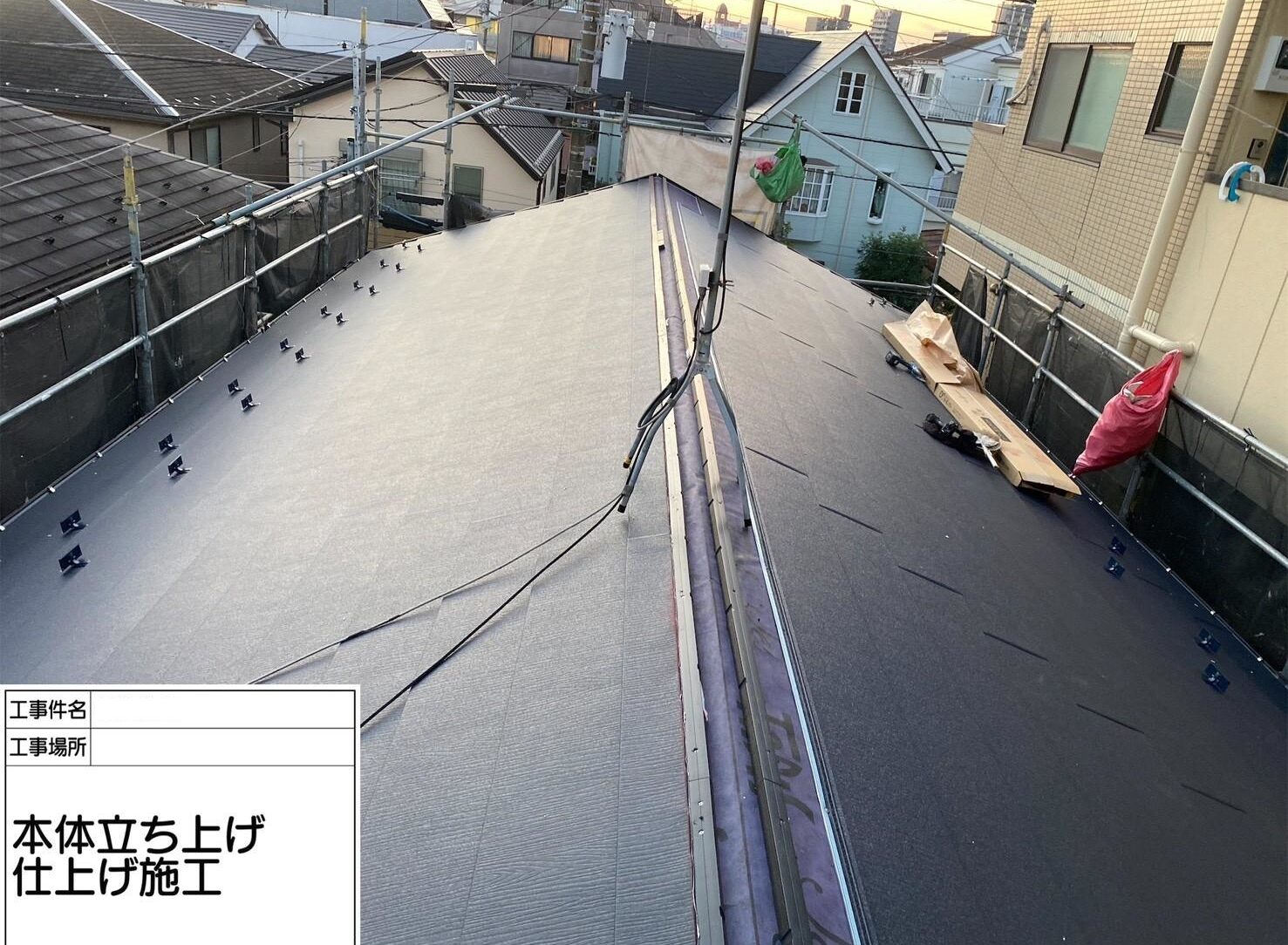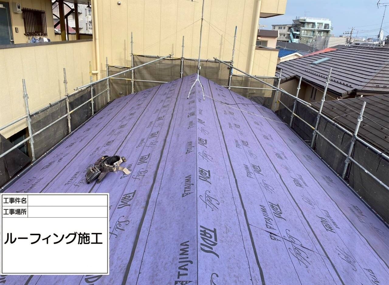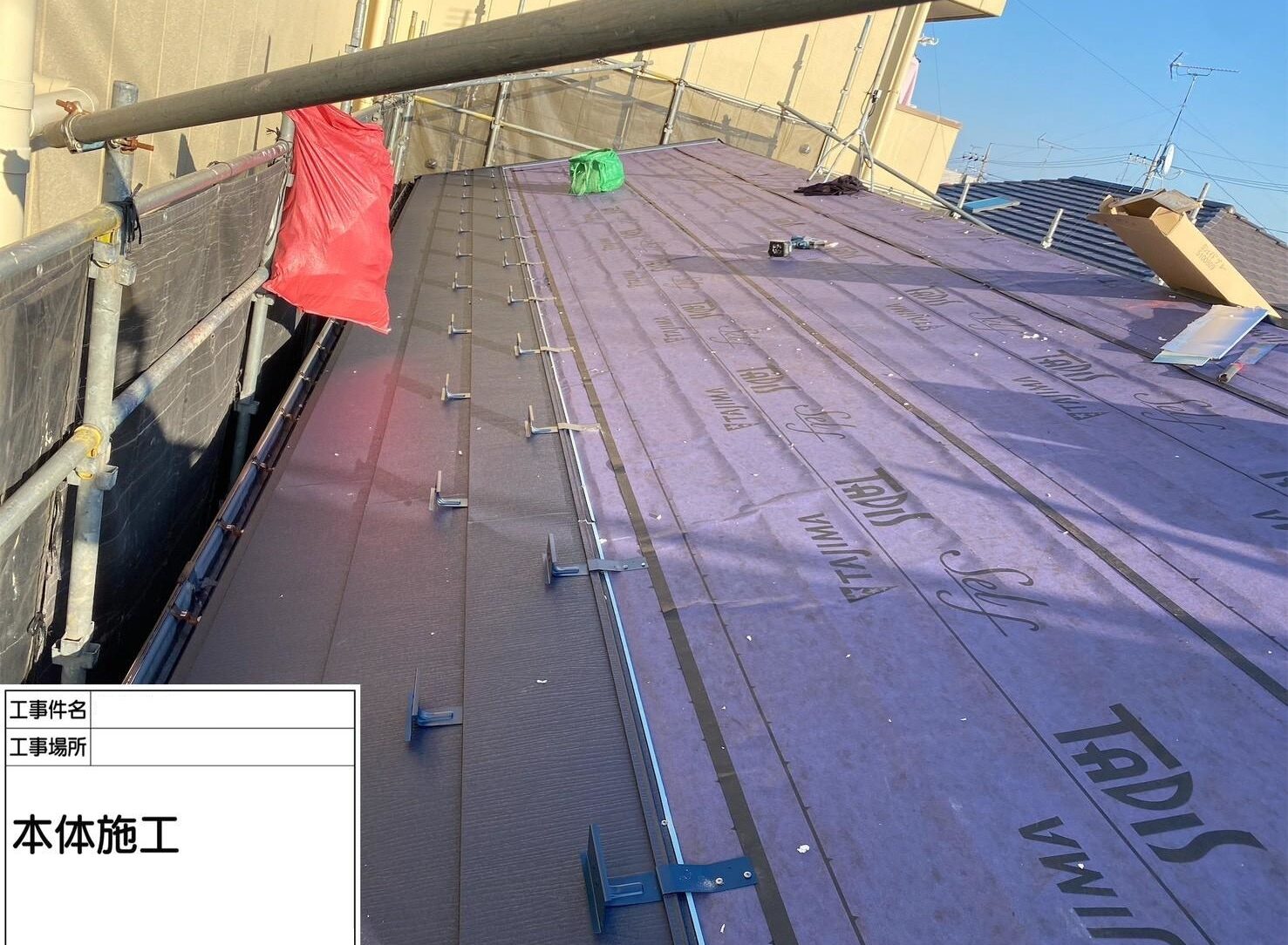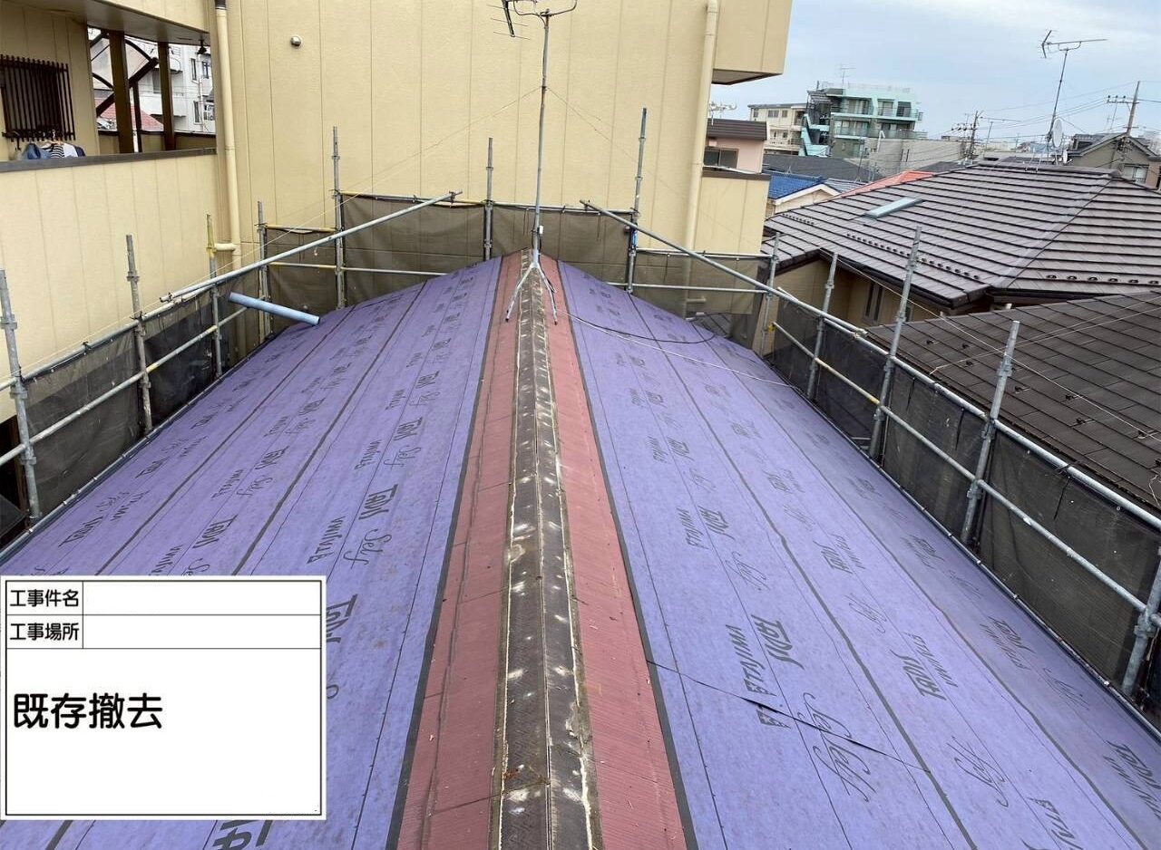屋根は、既存の貫板と板金を撤去し、ルーフィングシートを貼り、葺き替えました。